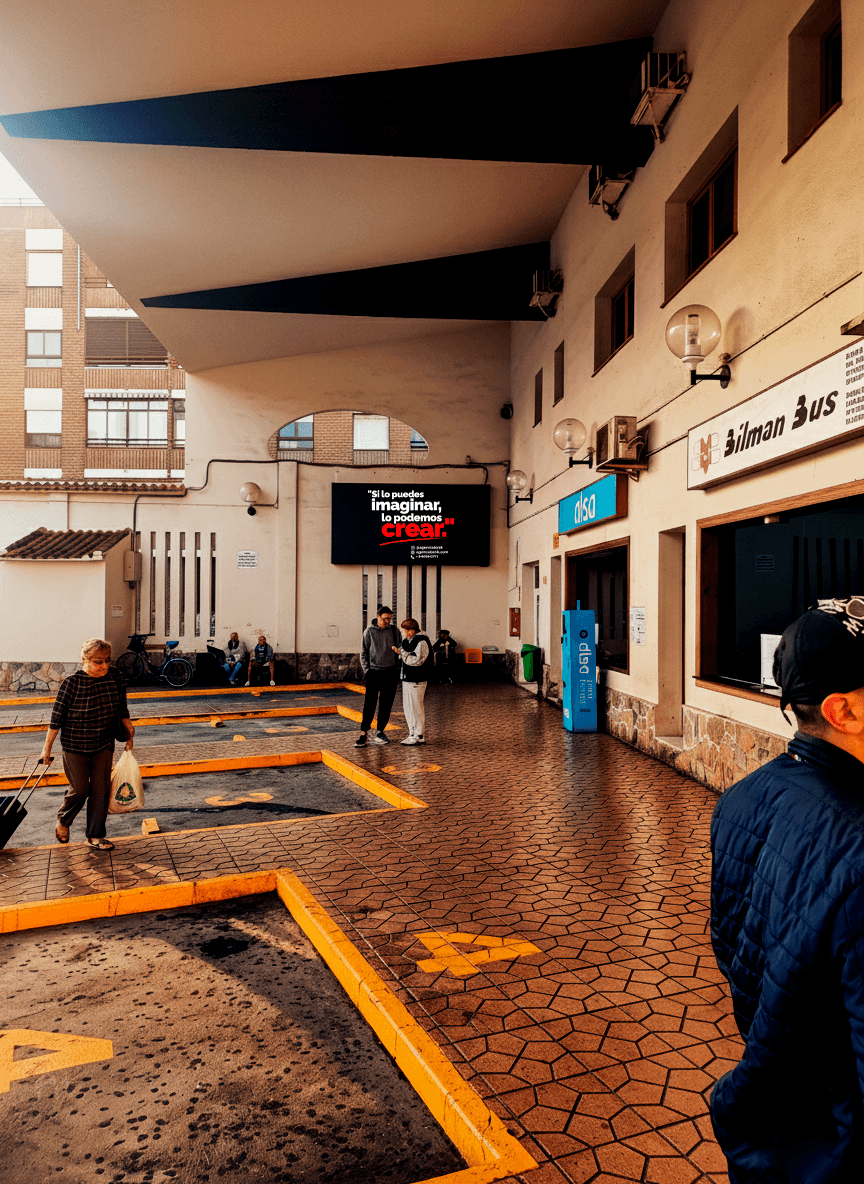 Cada día, miles de personas permanecen una media de 15 minutos esperando su autobús, situándose directamente frente a nuestra pantalla. Este tiempo de espera se traduce en alta atención, repetición del mensaje y máxima visibilidad, convirtiendo este soporte en un impacto publicitario altamente efectivo para su empresa o negocio.